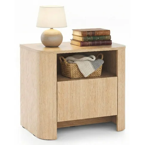 Prezentuje się elegancko we wnętrzu sypialni, a otwarta półka i szuflada zapewniają praktyczną przestrzeń na najczęściej używane drobiazgi. Produkt był dobrze zabezpieczony w przesyłce i bez uszkodzeń dotarł do domu. Zdecydowanie polecam osobom, które szukają minimalistycznych i funkcjonalnych mebli.