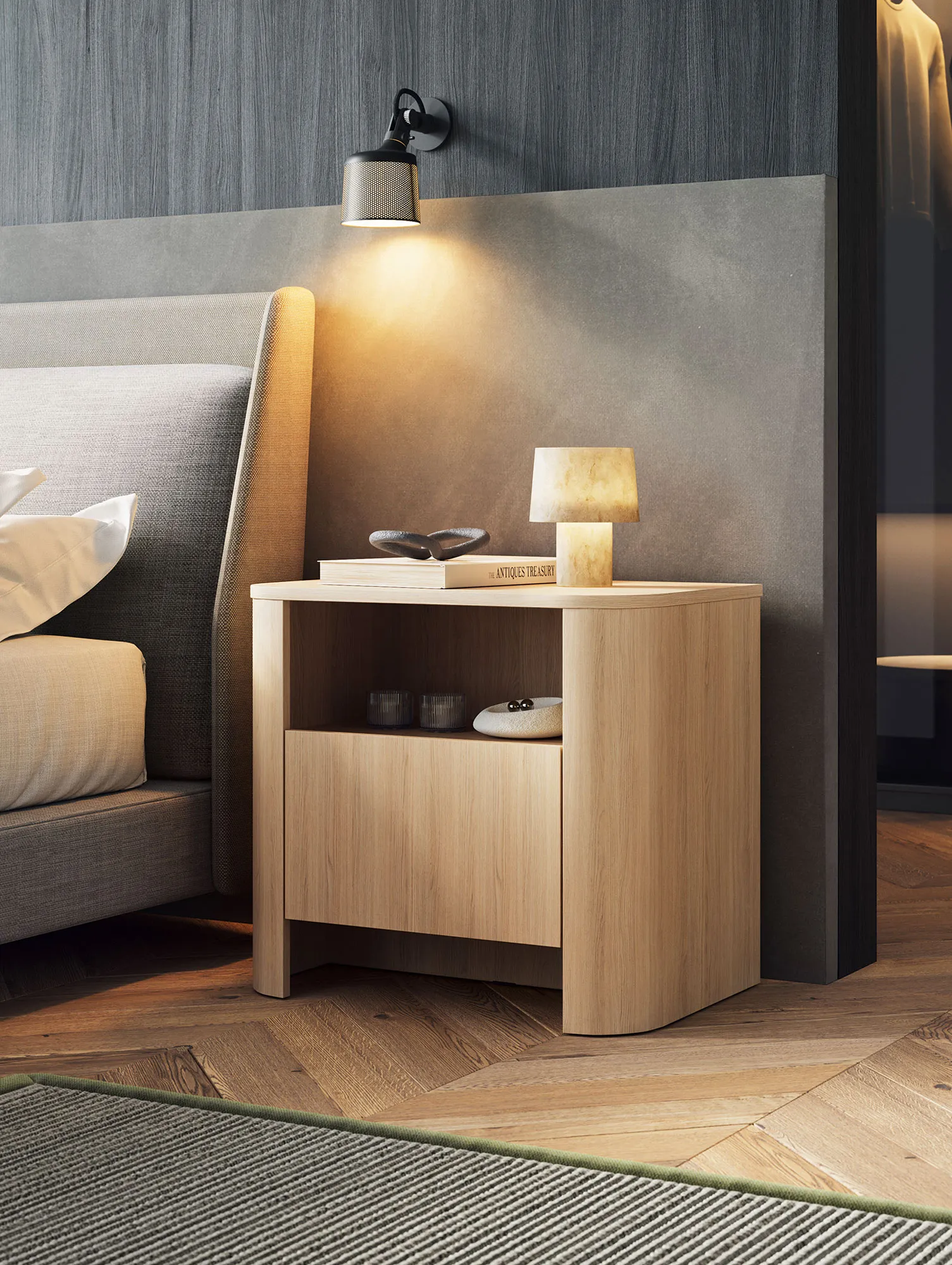 Wizualizacja wnętrza z stolikiem nocnym dąb vicenza Ebisso 7X