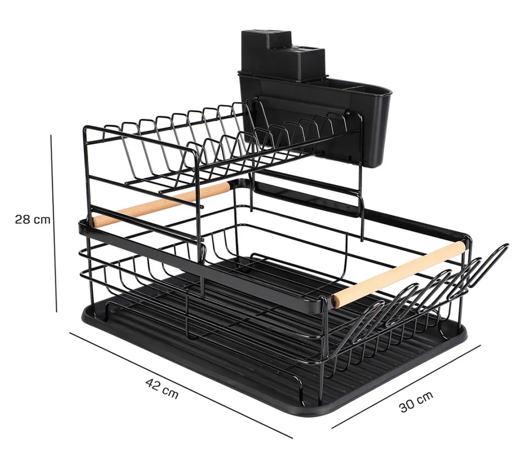 Miałem wiele suszarek, ale ta naprawdę robi wrażenie. Metalowa konstrukcja jest solidna i trwała. Szczególnie doceniam ociekacz na sztućce i dodatkowe wieszaki. Wygląda świetnie w nowoczesnej kuchni i jest bardzo funkcjonalna. Zdecydowanie polecam dla każdego, kto szuka czegoś co połączy styl z praktycznością.