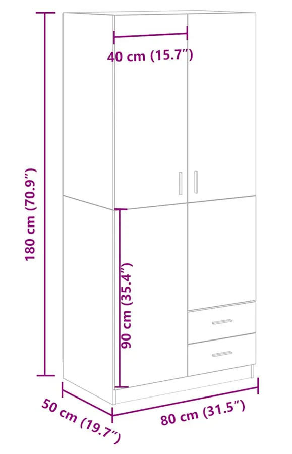 Konstrukcja tej szafy wydaje się solidna, szuflady pod dolną częścią działają płynnie, a przestrzeń w komorze na wiszące ubrania jest naprawdę pojemna. Montaż bez większych trudności.