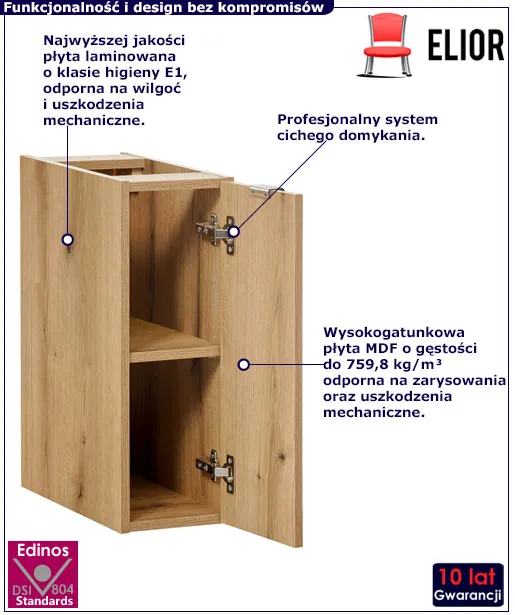 • Kolor: Dąb. Sprawdź także inne szafki łazienkowe wiszące w sklepie Edinos.pl. Stwórz swój praktyczny zestaw mebli.