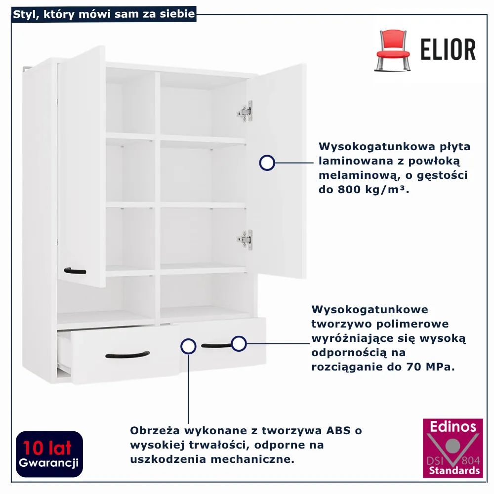 • 2 zamykane drzwi – pomagają utrzymać porządek, ukrywając zawartość szafki,