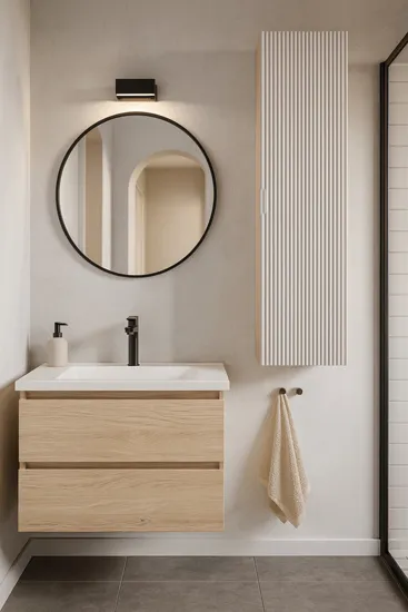 Dotyczy: Wiszący słupek łazienkowy ryflowany szałwiowy + orzech - Enda 9X