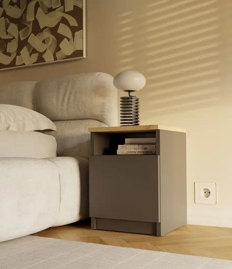 Dotyczy: Szafka nocna do sypialni biała + dąb artisan - Tesox