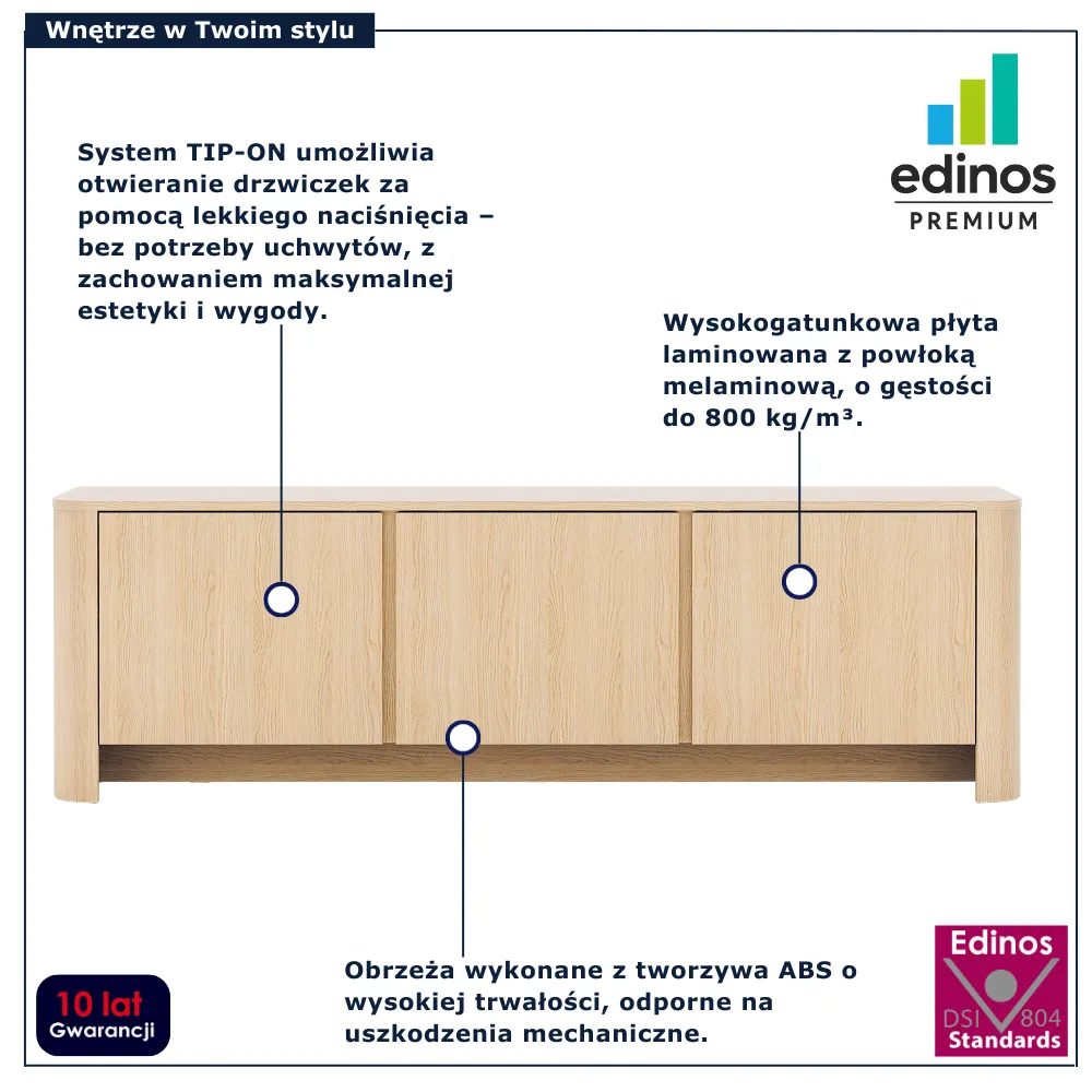 Szafka RTV Ebisso 6X marki Edinos Premium to nie tylko funkcjonalność, ale i wysmakowany styl – wszystko to w cenie promocyjnej 998 zł. Szafka pod telewizor Ebisso 6X to idealny wybór dla tych, którzy chcą połączyć estetykę z praktycznym zastosowaniem. Zainwestuj w nowoczesne rozwiązanie do swojego salonu – zamów już teraz!