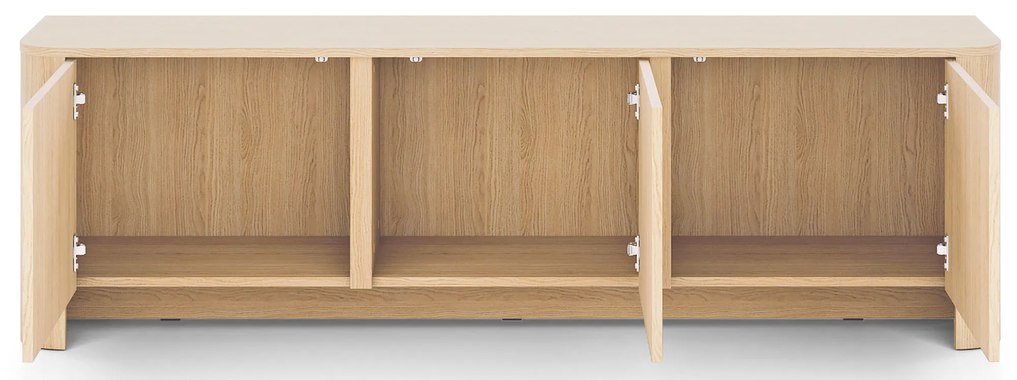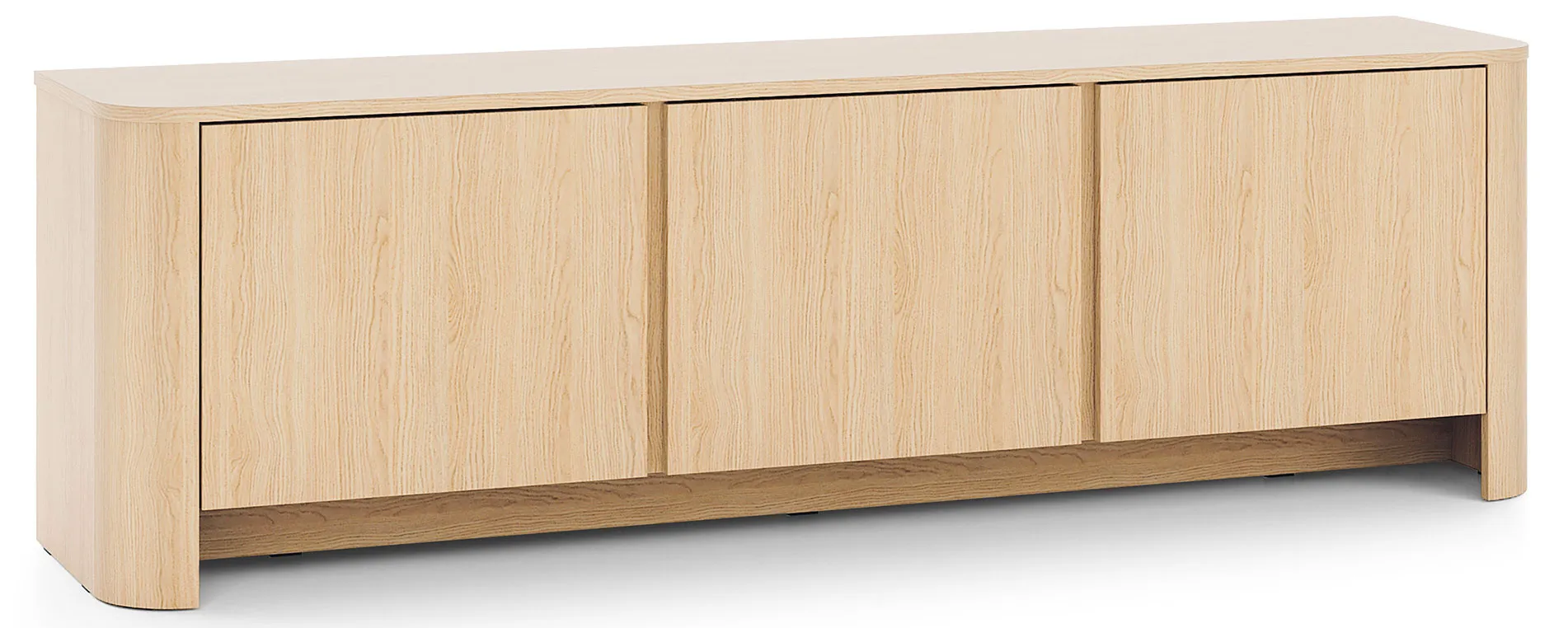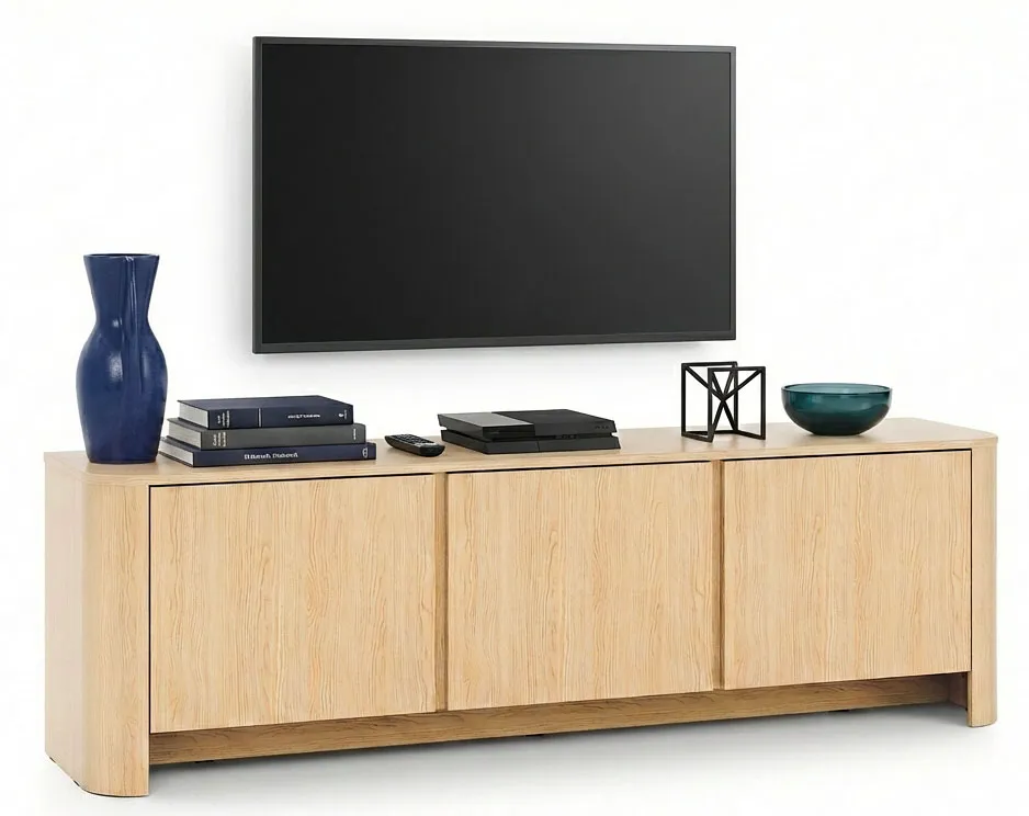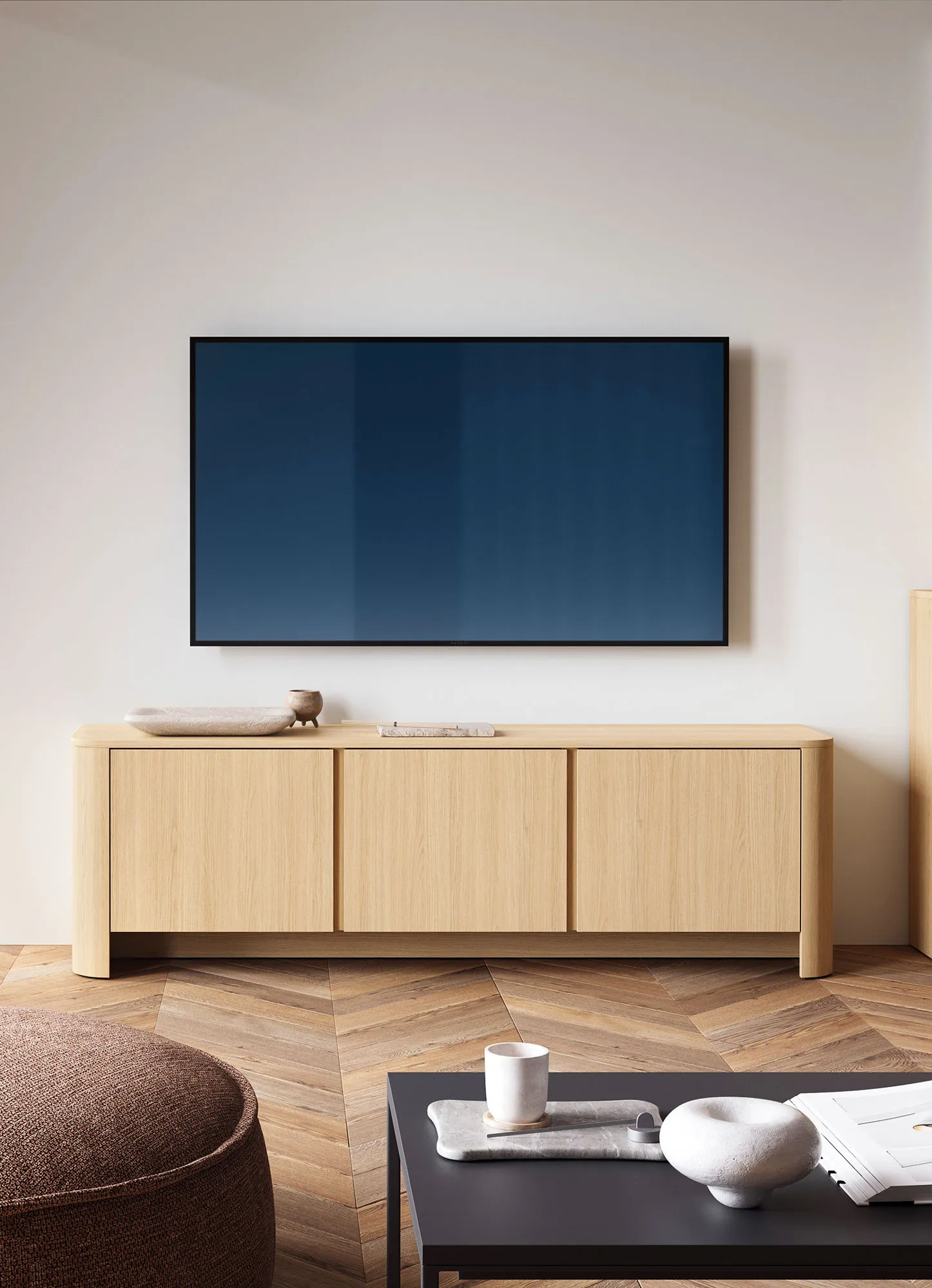 • Trzy pojemne szafki z półkami wewnętrznymi – idealne na konsole, dekodery, płyty i akcesoria
