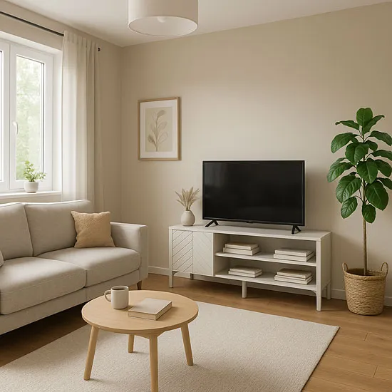Szafka prezentuje się bardzo nowocześnie i dobrze komponuje się z resztą mebli w moim salonie. Kolor kaszmir jest elegancki i nienachalny. Konstrukcja stabilna, wszystko dobrze spasowane. Sporo miejsca na dekodery, konsole i drobiazgi. Montaż był prosty, czytelna instrukcja. Nóżki są solidne, a całość nie traci stabilności nawet po obciążeniu. Dobrze wygląda zarówno z większym telewizorem, jak i w mniejszych przestrzeniach. To był udany zakup, zdecydowanie polecam.
