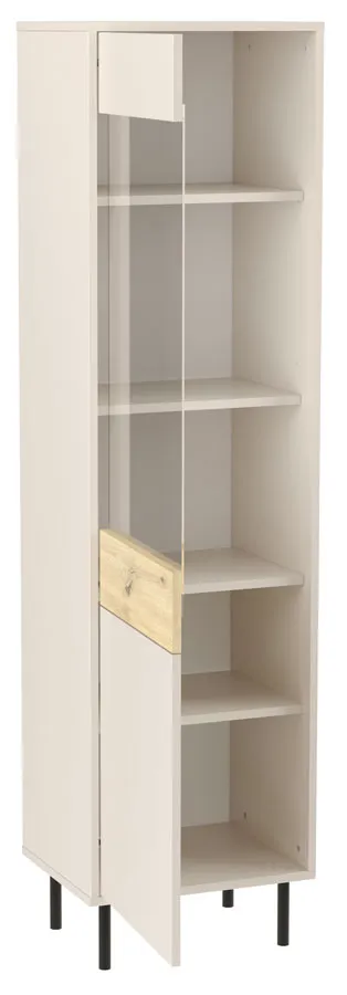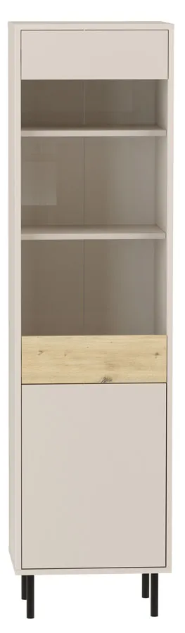 Nowoczesna szklana witryna na nóżkach kaszmir + dąb artisan - Liosso 7X