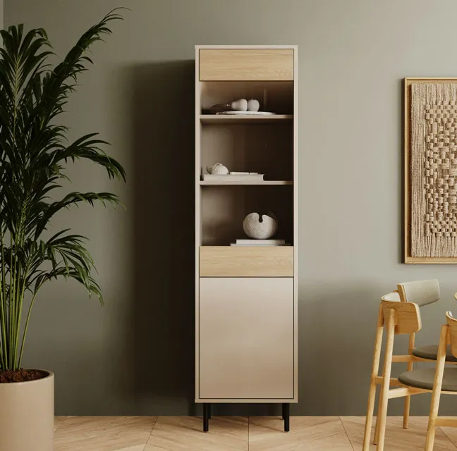 Eleganckie wnętrze to takie, które łączy piękno z praktycznymi rozwiązaniami. Witryna Liosso 7X marki Edinos Premium to doskonały przykład takiego połączenia – wysoka, smukła i zaprojektowana z myślą o maksymalnej funkcjonalności. Jej subtelne wykończenie w kolorze kaszmir + dąb artisan wprowadza do pomieszczenia ciepło i harmonię, a przeszklone drzwi pozwalają stworzyć stylową ekspozycję ulubionych dekoracji. Wysokość 190 cm sprawia, że witryna oferuje wyjątkowo dużo miejsca do przechowywania – zarówno tych rzeczy, które chcesz pokazać, jak i tych, które lepiej zachować poza zasięgiem wzroku.