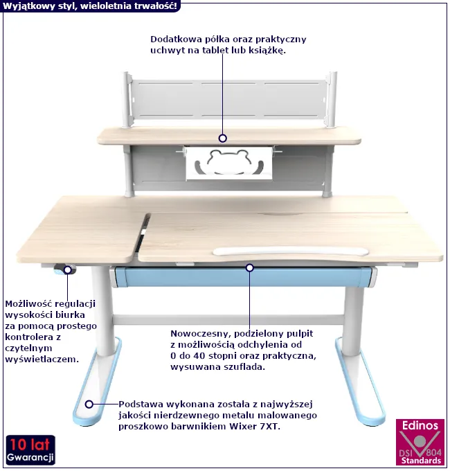 - Modna kolorystyka: niebieska. Kliknij w link i sprawdź także inne biurka młodzieżowe w sklepie Edinos.pl. Stwórz swój praktyczny zestaw mebli.