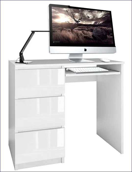 - Modna kolorystyka: Korpus - biały mat, fronty - biały połysk. Kliknij w link i sprawdź także inne białe biurka w sklepie Edinos.pl. Stwórz swój praktyczny zestaw mebli.