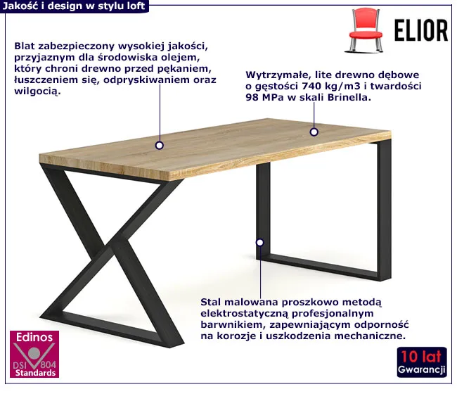 Tradycyjne biurka nie spełniają Twoich oczekiwań? Masz dosyć oczywistego designu, którym charakteryzuje się każde przeciętne biurko? Poznaj więc mebel, który zaskakuje swoją formą, zachwyca jakością i oryginalnymi detalami. To industrialne biurko Xago marki Edinos Premium - wspiera kreatywność, inspiruje oraz zdobi przestrzeń!