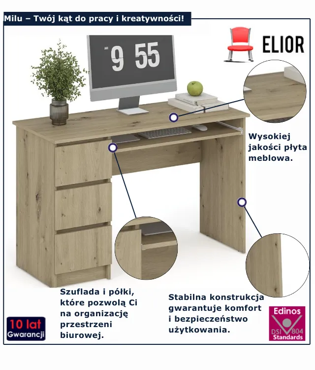 Dotyczy: Nowoczesne biurko z szufladami dąb artisan + grafit - Elzi