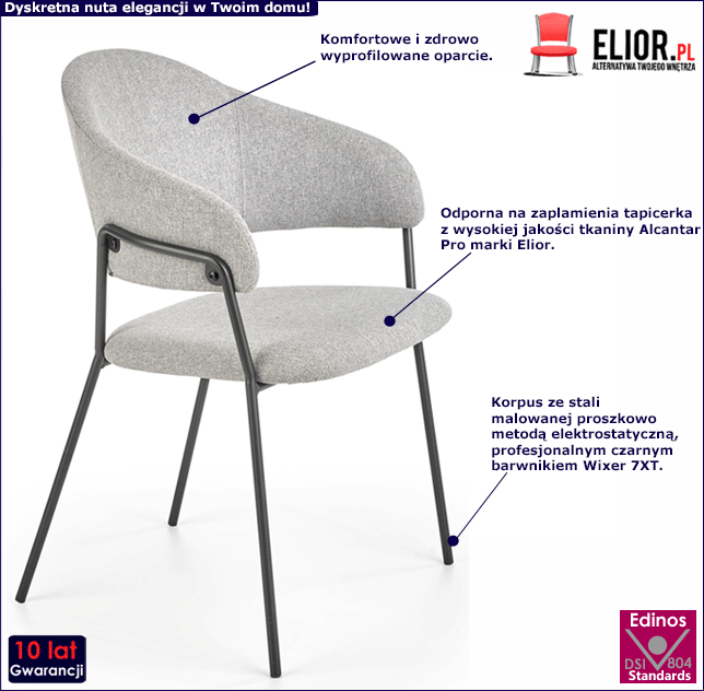 • Kolor: Popielata tapicerka i czarne nóżki. Kliknij w link i zobacz też inne popielate krzesła w sklepie Edinos.pl - na pewno znajdziesz coś dla siebie!