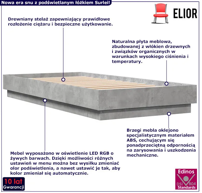 Dotyczy: Pojedyncze łóżko z podświetleniem dąb sonoma 90x200 - Irjas
