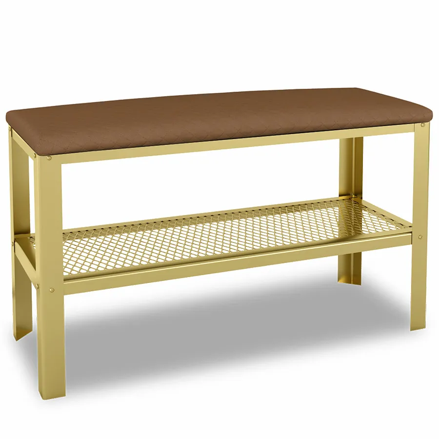 Nowoczesne siedzisko z półką na buty złoty + ciemny beż - Sagal 3X