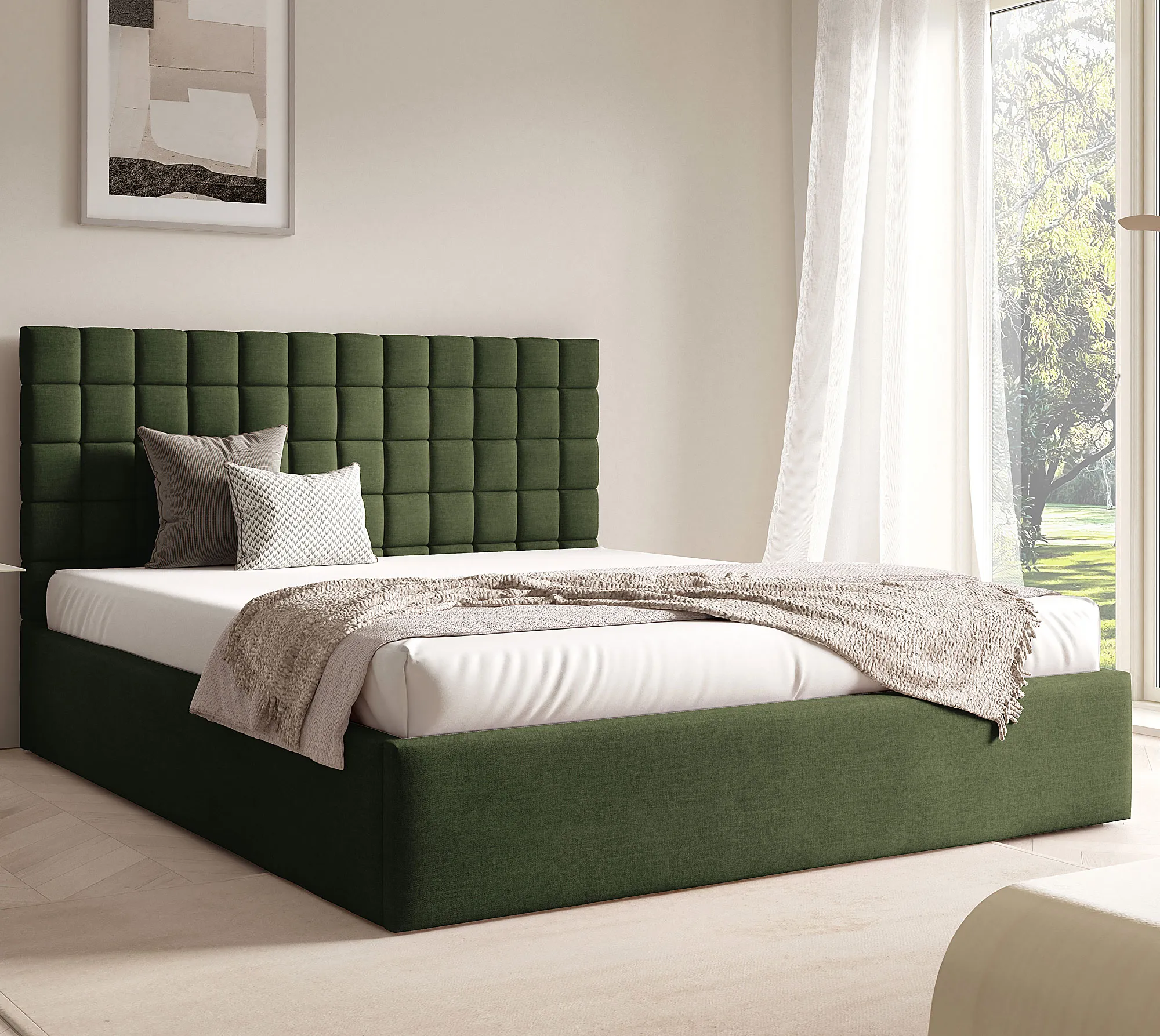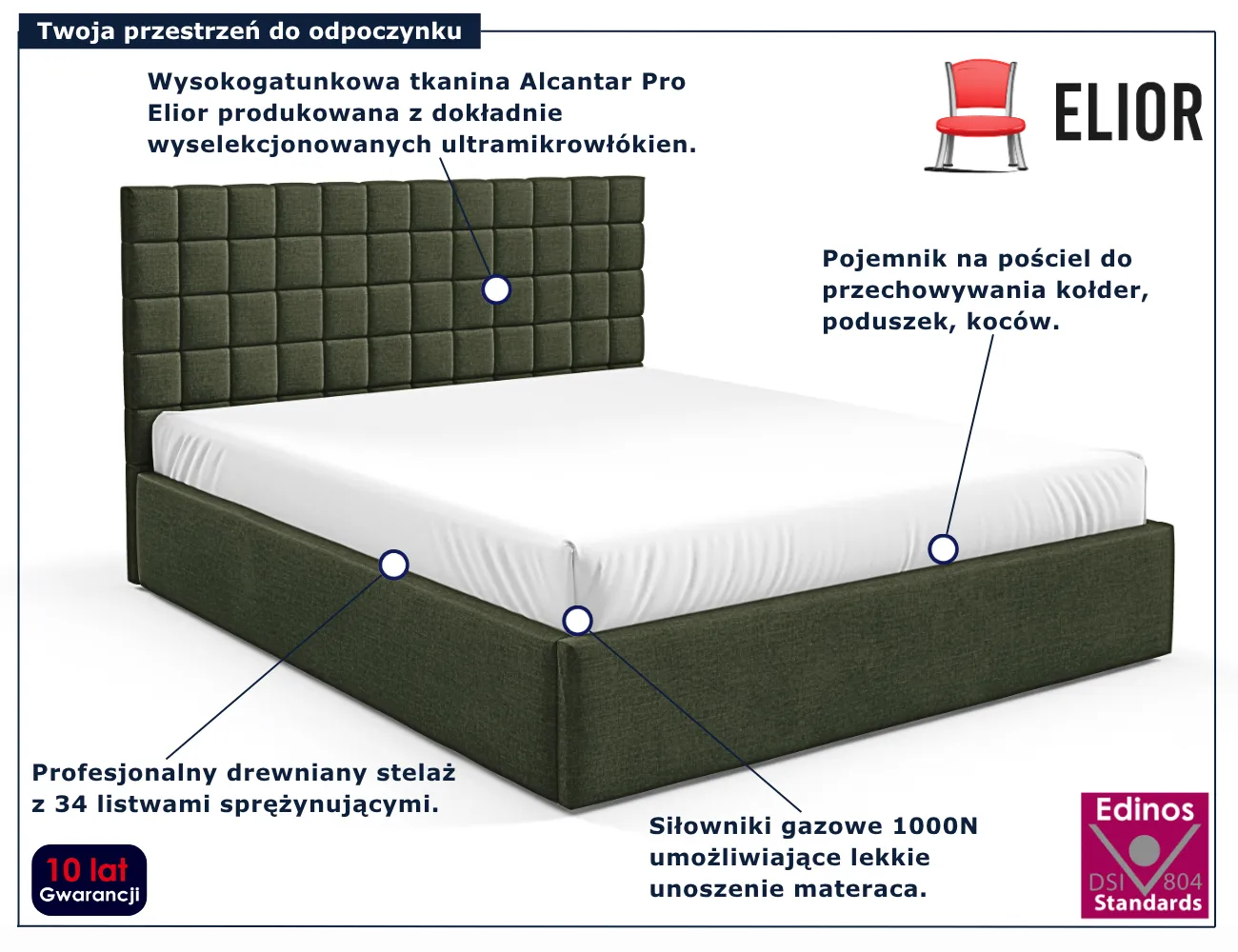 Zielone tapicerowane łóżko z pojemnikiem Merenzo