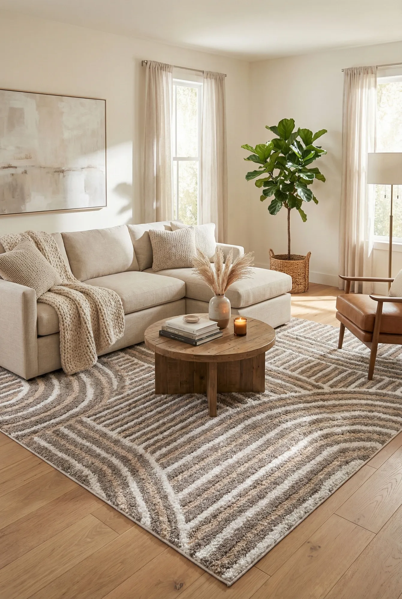 Aranżacja salonu z brązowym dywanem w stylowy wzór Pinio 8X
