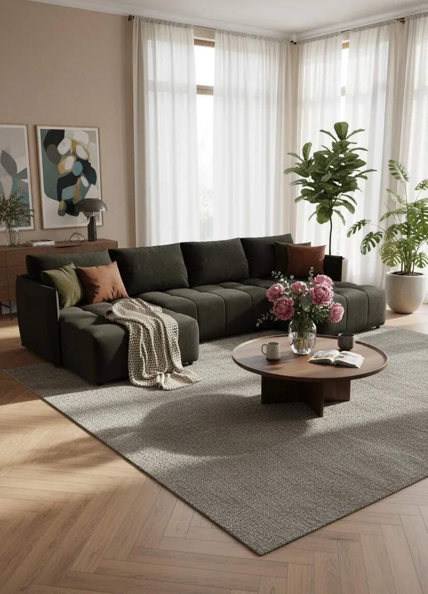 Narożnik dobrze komponuje się z nowoczesnym wnętrzem i wygląda naprawdę elegancko. Tkanina jest miła w dotyku, a kolor głęboki, co dodaje charakteru salonowi. Siedzisko jest dość wygodne, a montaż nie sprawił większych trudności. Na plus też fakt, że łatwo go utrzymać w czystości.