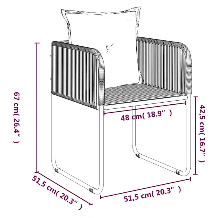 • Wymiary krzeseł: szerokość: 51,5 cm, głębokość: 51,5 cm, wysokość: 67 cm.