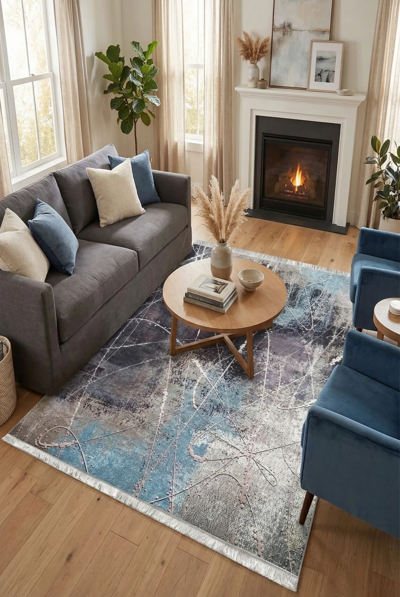 Aranżacja salonu z dywanem w abstrakcyjne wzory Fendy