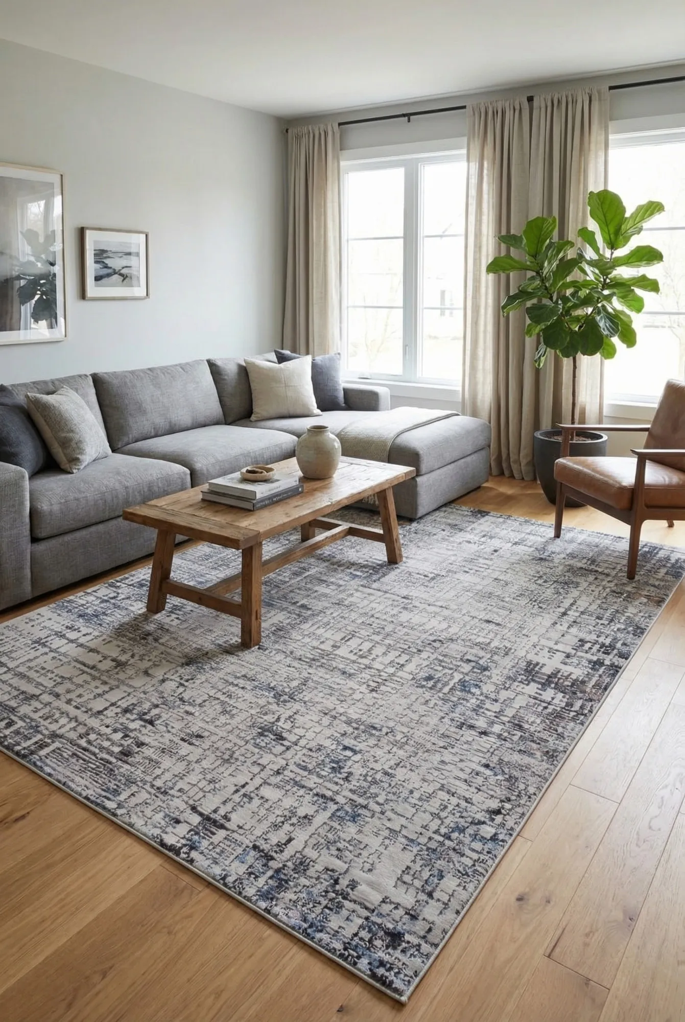 Aranżacja salonu z dywanem w kratkę Retioz 4X