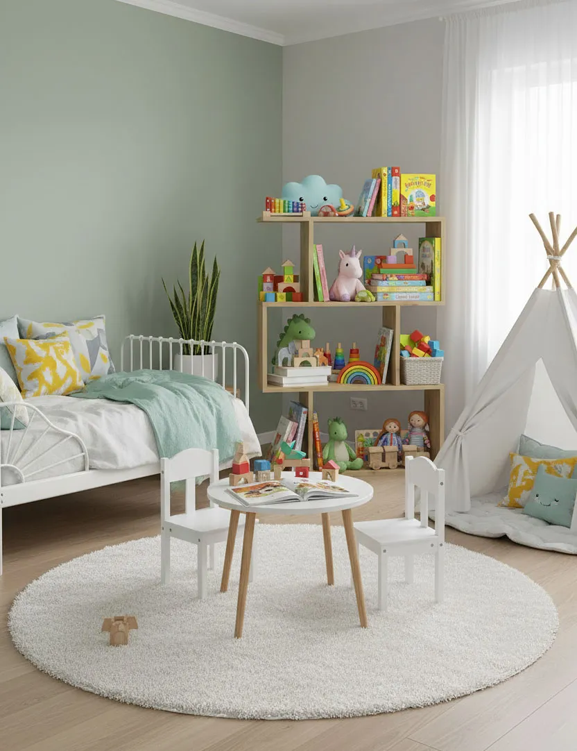 Zobacz jak prezentuje się regał na zabawki Karli 2X we wnętrzu pokoju dziecięcego: