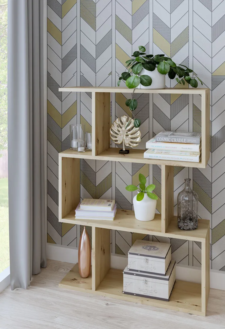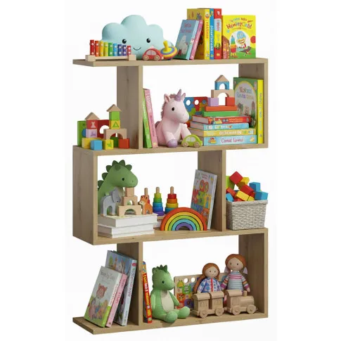 Niesymetryczny układ półek zwiększa możliwości organizacyjne i pozwala dopasować przestrzeń do przedmiotów o różnych rozmiarach – od większych zabawek po mniejsze gry i książeczki. Zróżnicowana wysokość półek ułatwia dziecku samodzielne sięganie po ulubione przedmioty, co sprzyja nauce porządku i niezależności. Regał Karli 2X doskonale sprawdzi się w pokoju dziecięcym i młodzieżowym, ale z powodzeniem może pełnić także funkcję regału pomocniczego w innych częściach domu. To praktyczne rozwiązanie dla wnętrz urządzonych w stylu nowoczesnym, minimalistycznym lub klasycznym, gdzie liczy się funkcjonalność i estetyka.
