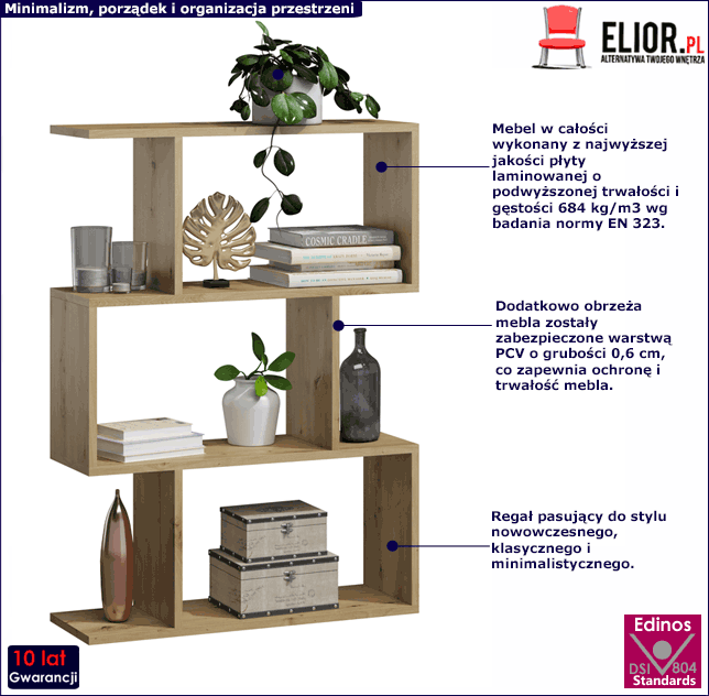 - Kolor: dąb artisan. Kliknij w link i sprawdź także inne regały otwarte w sklepie Edinos.pl. Stwórz swój praktyczny zestaw mebli.