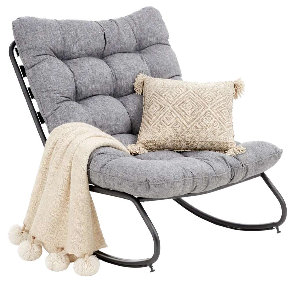 Fotel prezentuje się elegancko, a bujanie działa płynnie i daje poczucie relaksu. Montaż przebiegł bez problemu, całość stabilna i dobrze wykonana.