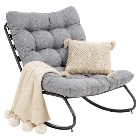 Fotel bujany okazał się bardzo komfortowy, a jego nowoczesna forma sprawia, że pasuje zarówno do salonu, jak i sypialni. Mechanizm bujania działa płynnie i pozwala się odprężyć po całym dniu. Tapicerka wygląda solidnie, a oparcie oraz siedzisko dają odpowiednie podparcie. Całość jest stabilna i praktyczna, dzięki czemu mebel pełni funkcję zarówno użytkową, jak i dekoracyjną.