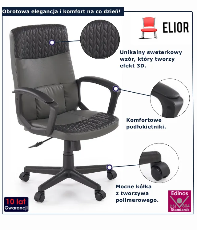 • Modny kolor: czarny + popiel. Kliknij w link i sprawdź także inne nowoczesne fotele obrotowe w sklepie Edinos.pl. Stwórz swój praktyczny zestaw mebli.