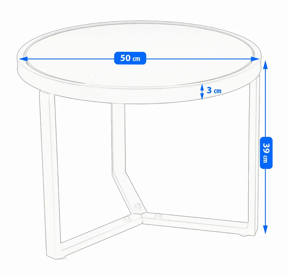 • Wymiary stolika: wysokość: 39 cm, szerokość: 50 cm, głębokość: 50 cm, maksymalne obciążenie: 100 kg.