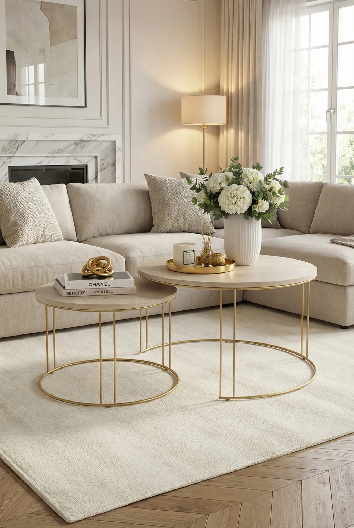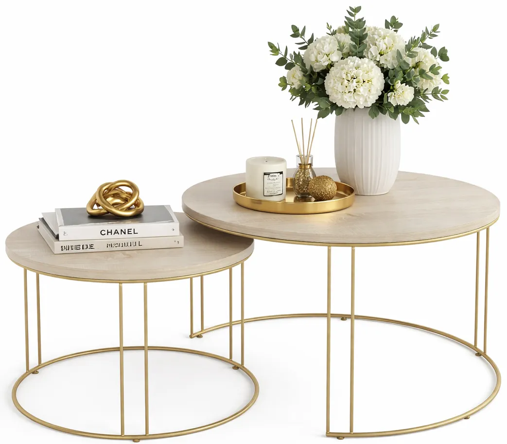 Dotyczy: Komplet dwóch stolików kawowych glamour złoty + biały - Eksa 3X