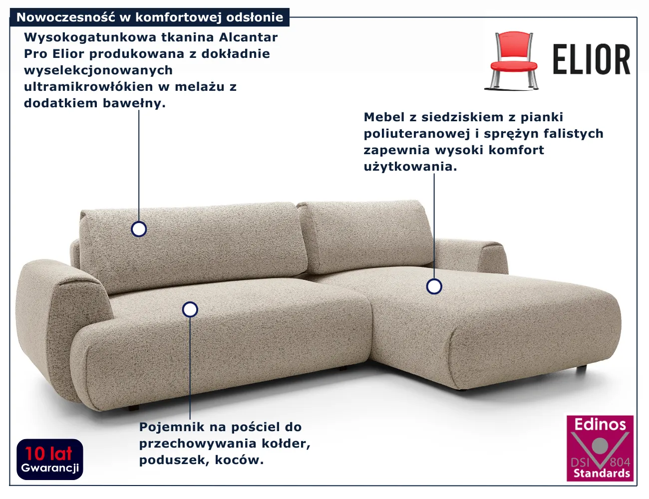 Dotyczy: Nowoczesny narożnik rozkładany ecru - Mezzia 3X