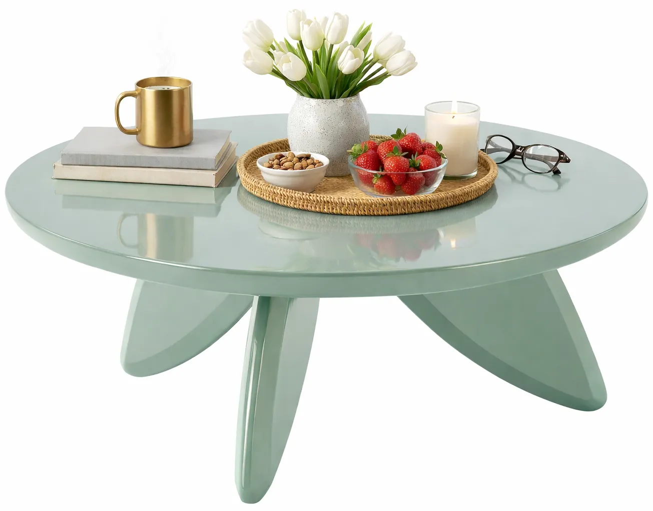 Dotyczy: Okrągły nowoczesny stolik musztardowy - Harvel 4X