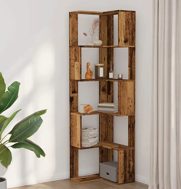 Dotyczy: Otwarty narożny regał na książki brązowy dąb - Olla