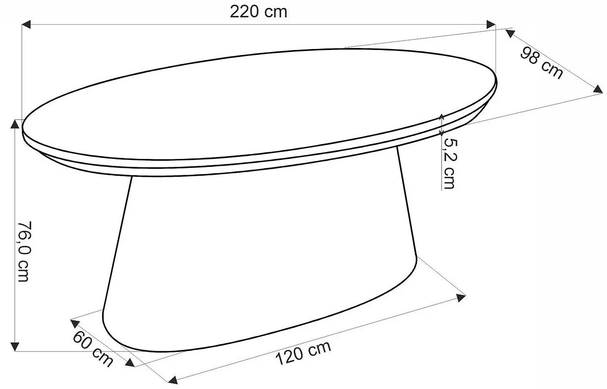 • Owalny blat zapewniający większą przestrzeń i wygodę podczas wspólnych posiłków.