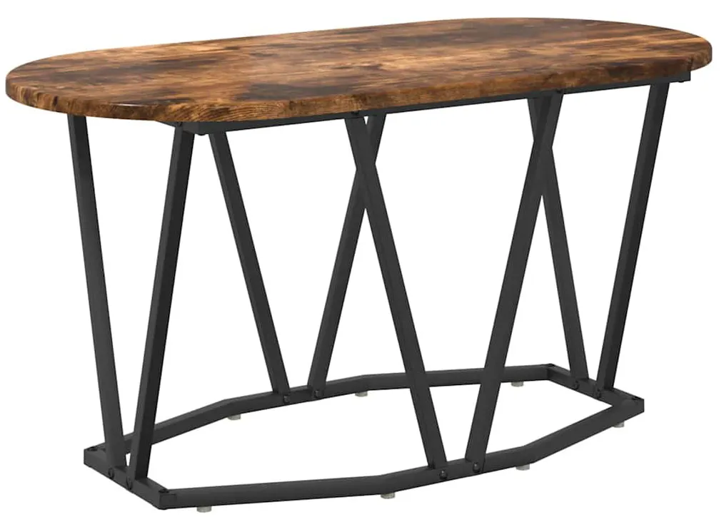 Rustykalny owalny stolik kawowy metalowy Ebin dąb wędzony