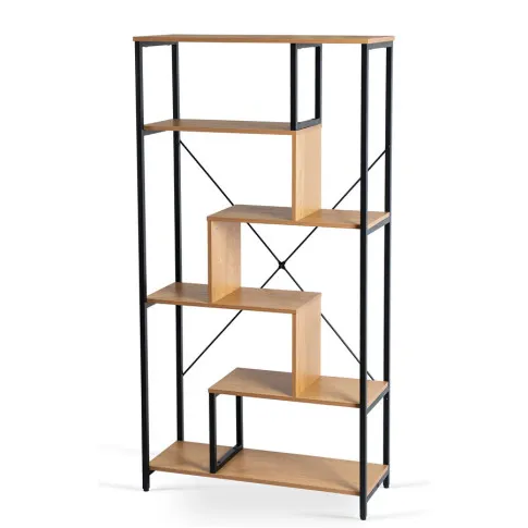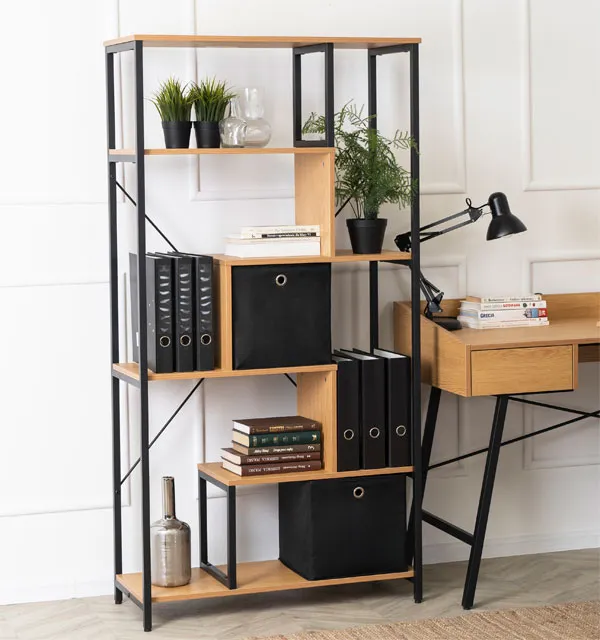 Czarny loftowy otwarty regał z półkami dąb sonoma Bonnie