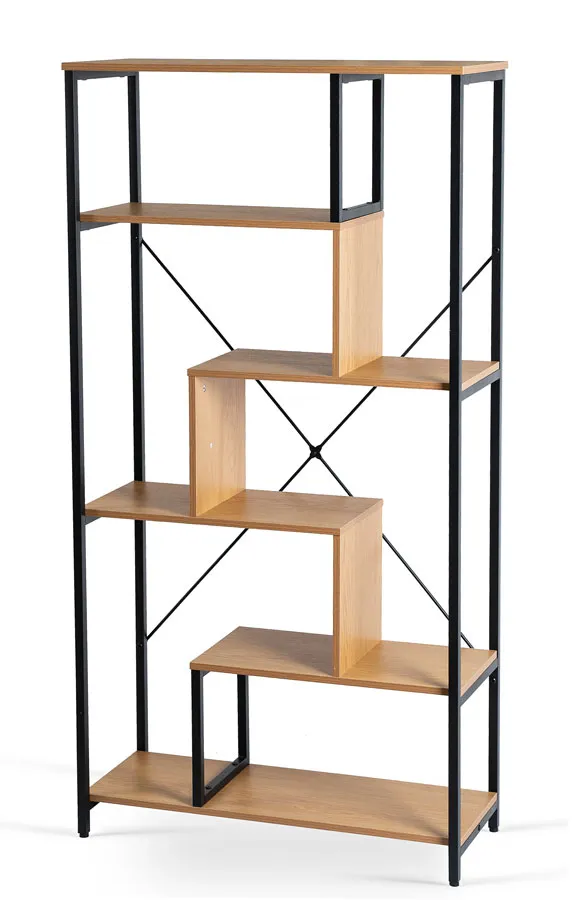 Czarny regał otwarty z półkami dąb złoty Bonnie