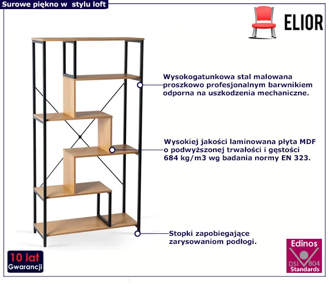 • półki wykonane z trwałej, laminowanej płyty MDF o podwyższonej trwałości i gęstości