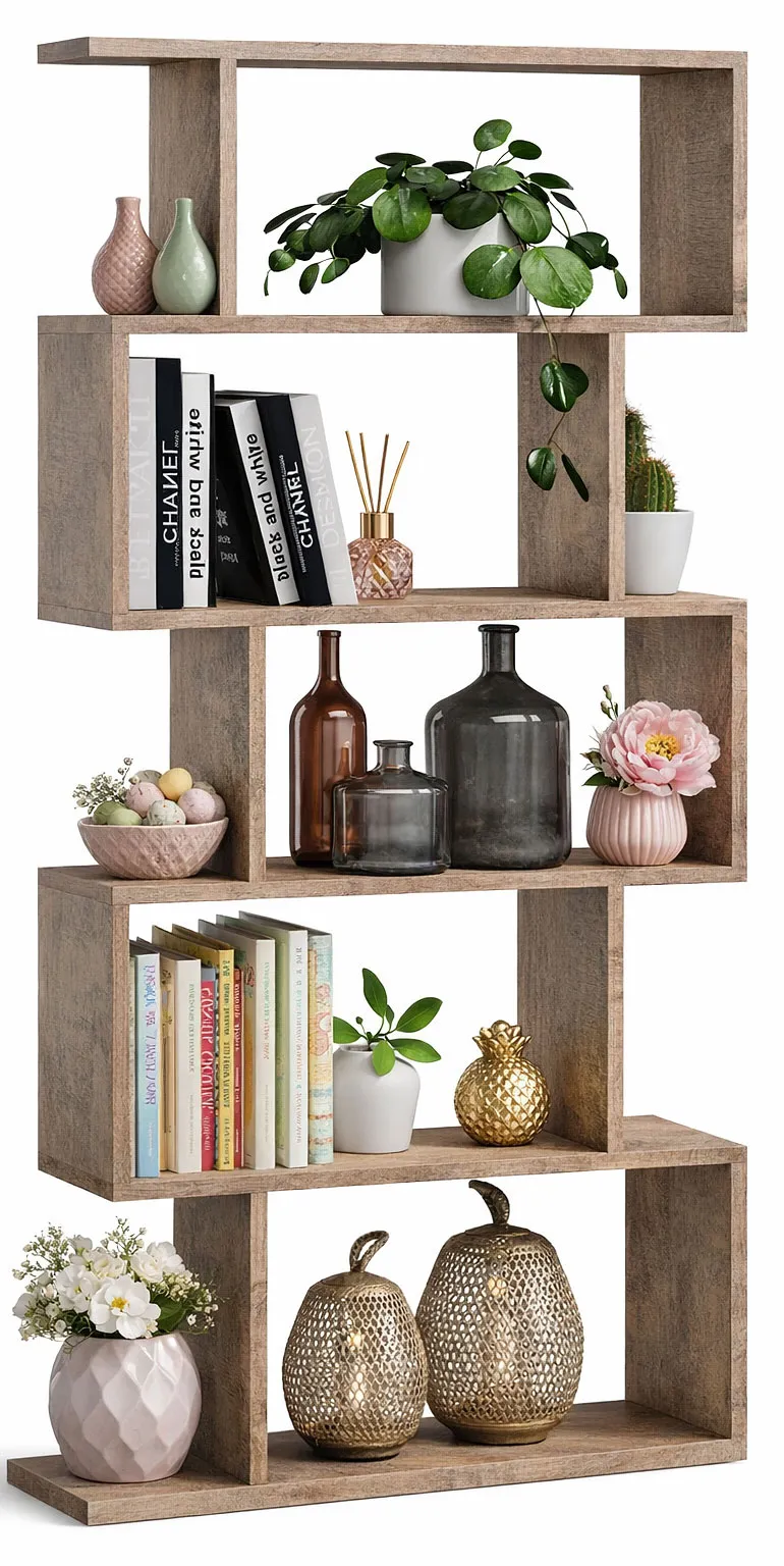 Prezentowany przez nas model regału charakteryzuje się minimalizmem i niebywałą możliwością organizacji przestrzeni. Mebel został wykonany z jednego materiału co nie powoduje wrażenia przesytu i przepychu w pomieszczeniach. Ponadto uniwersalna kolorystyka idealnie wkomponuje się w wystrój wnętrza Twojego domu w subtelny sposób podkreślając jego naturalny i delikatny akcent. Innowacyjny projekt to zaleta, która kryje w sobie niesymetryczny układ półek. Dzięki półkom oraz bocznych wysunięciach możesz znaleźć odpowiednie miejsce dla przedmiotów o różnej wielkości. Dodatkowym atutem są wymiary mebla oraz ułożenie półek na różnych wysokosciach, co pozwoli na korzystanie z niego osobom o różnym wzroście. Model regału o takich cechach idealnie odnajdzie się w salonie, domowej bibliotece, przedpokoju, sypialni lub pokoju dziecięcym i młodzieżowym. Dzięki niemu z pewnością każdy znajdzie idealne miejsce dla różnego rodzaju drobiazgów, ozdób, roślin i książek. Takie atuty pozwolą Ci na dopasowanie regału do pomieszczeń zaaranżowanych w stylu nowoczesnym, minimalistycznym i klasycznym.