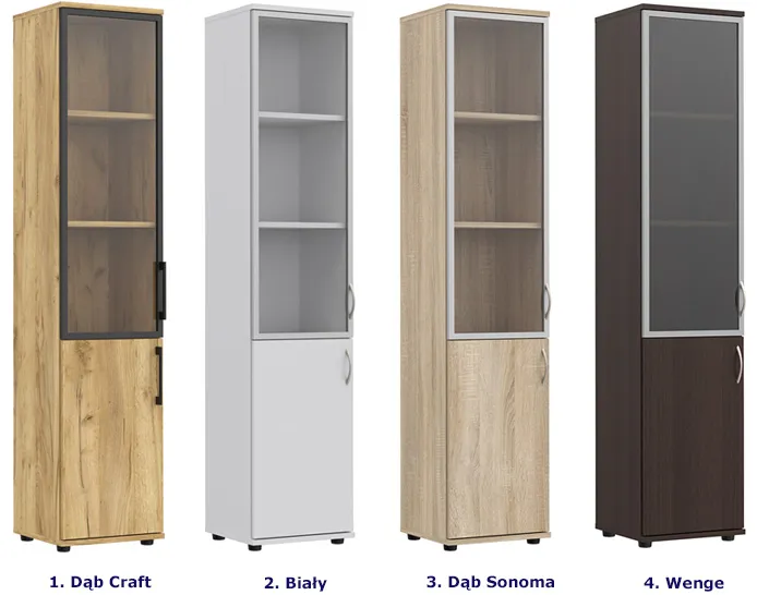 Dotyczy: Wąski regał biurowy z witryną dąb craft - Heda