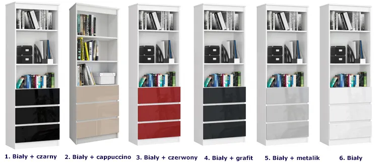 Dotyczy: Klasyczny regał z szufladami biały połysk - Chamat 4X