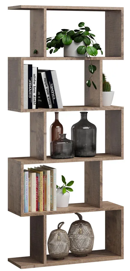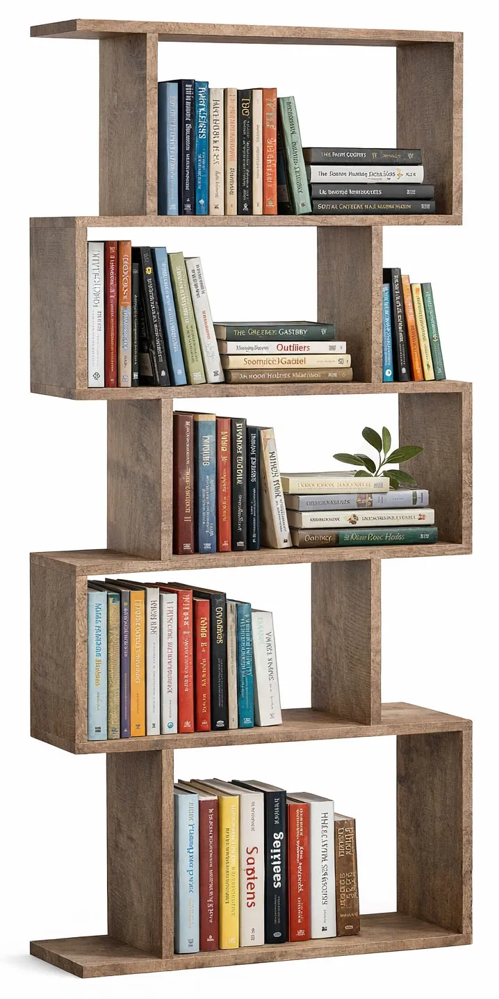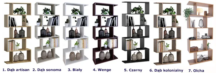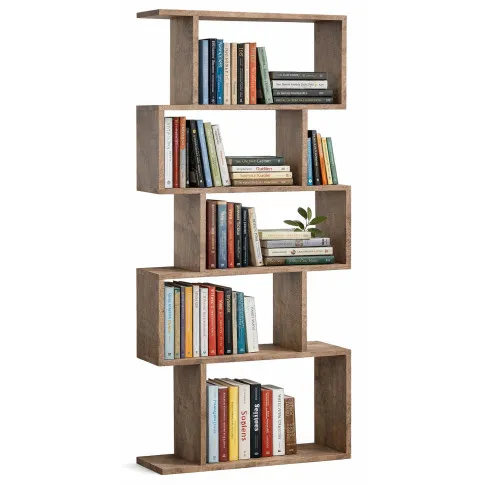 Na szczególną uwagę zasługuje niesymetryczny układ półek, który umożliwia wygodne rozmieszczenie książek o różnych formatach – od mniejszych wydań po większe albumy i encyklopedie. Zróżnicowana wysokość półek ułatwia segregację zbiorów i szybki dostęp do ulubionych tytułów. Otwarta konstrukcja regału sprzyja także estetycznej ekspozycji książek, dzięki czemu mogą one pełnić nie tylko funkcję praktyczną, ale i dekoracyjną.