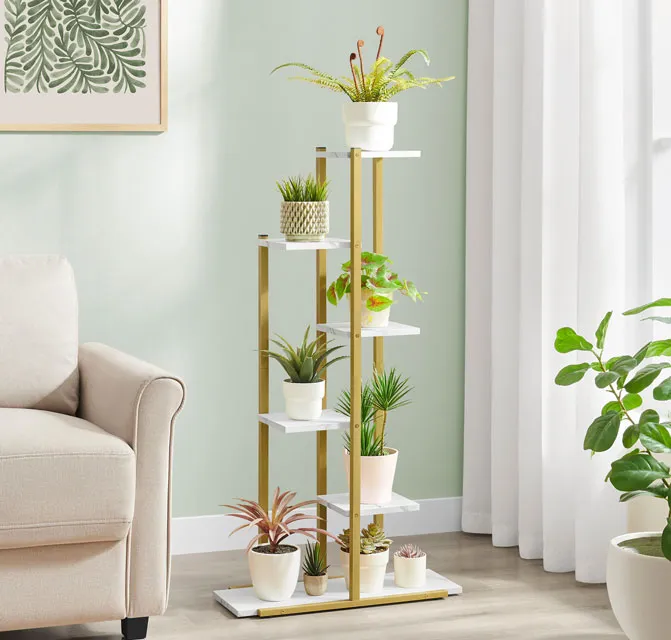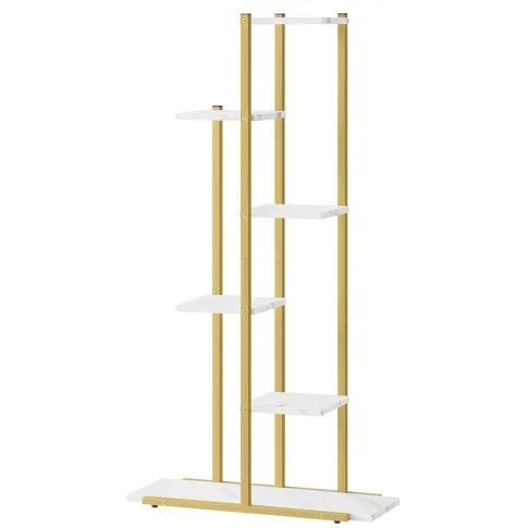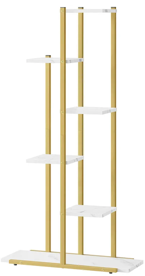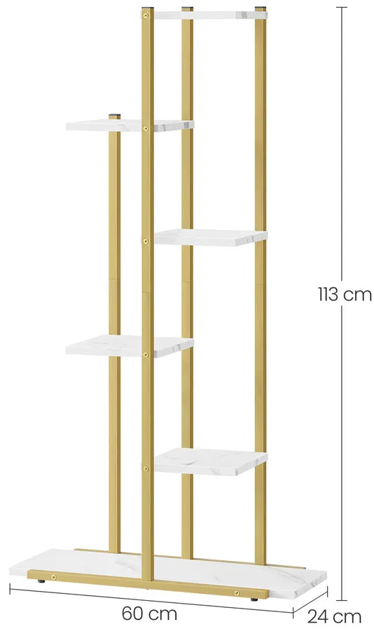 Nowoczesny regał na kwiaty z 6 półkami Diveros marmurowy + złoty