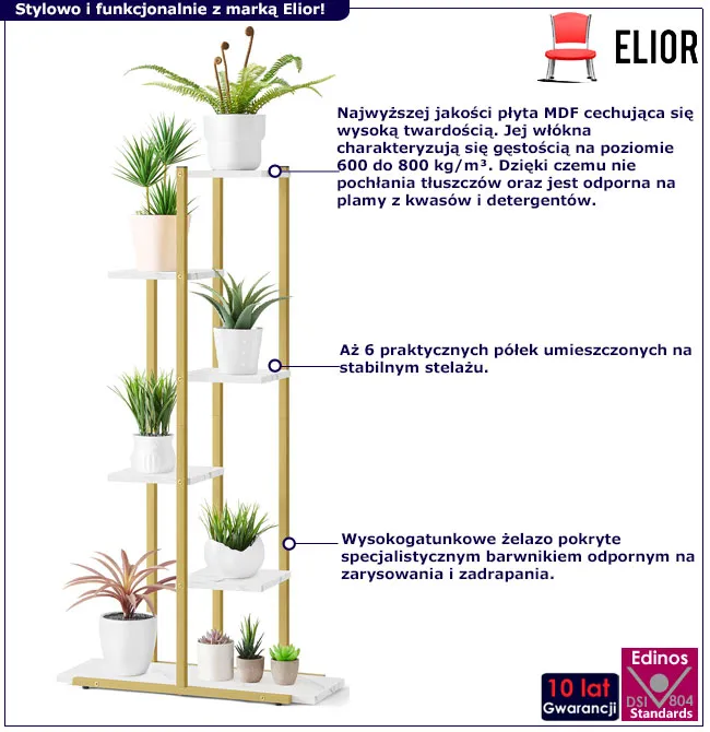 • półki są stabilne, co pozwala na bezpieczne ustawienie kwiatów w wazonach i innych dekoracji