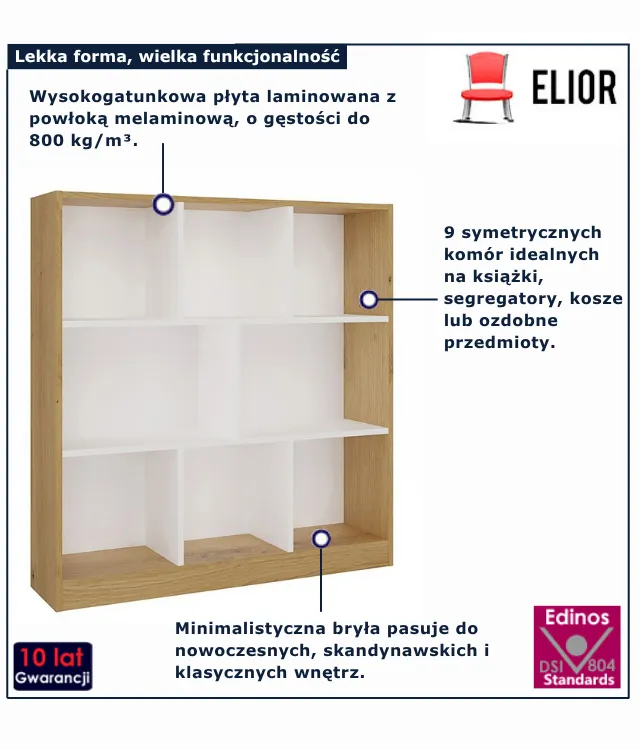 • 8 funkcjonalnych półek. Idealne na książki, dekoracje lub pudełka do przechowywania.