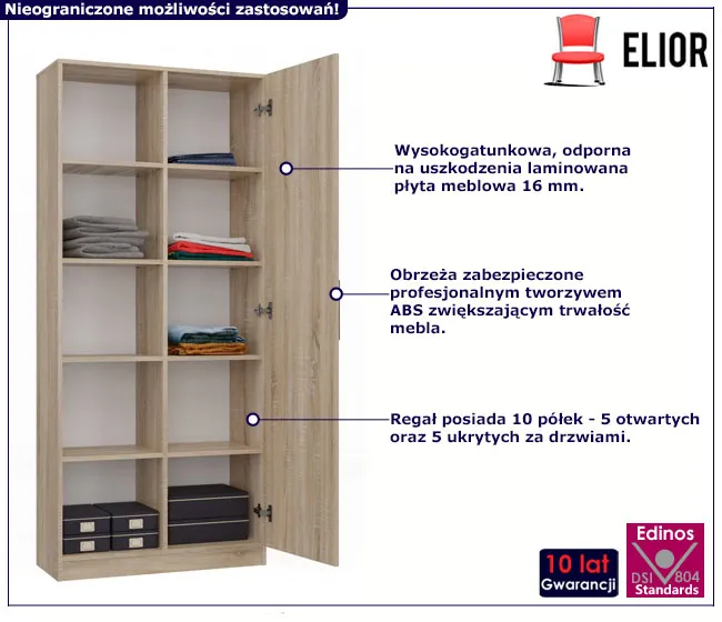 Dotyczy: Regał z półkami do salonu dąb artisan + antracyt - Nodino